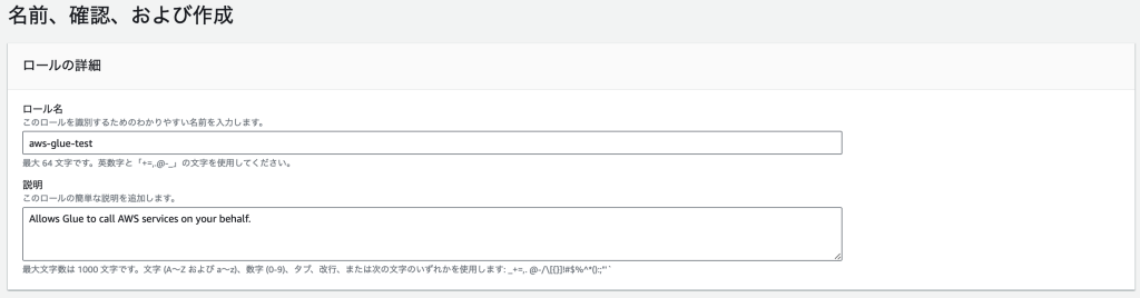 ロール名を入力し、設定内容に問題なければ「ロールを作成」ボタンをクリック。