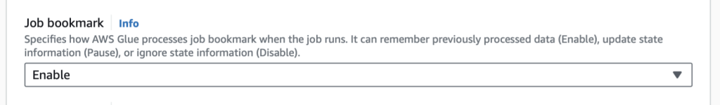 ブックマーク機能を有効にするには、「job bokmark」を「Enable」に設定します。