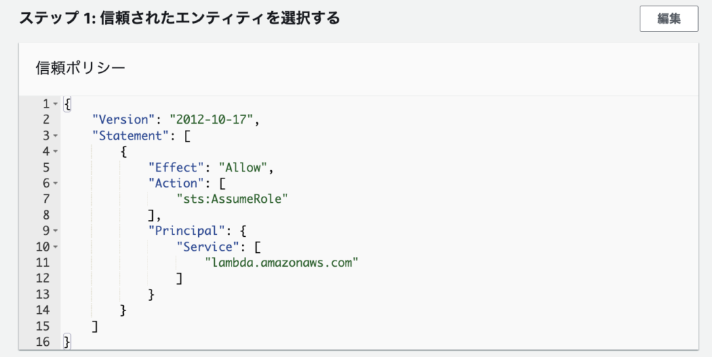 Lambda実行に適したポリシーを自動で設定してくれるので、ユースケース「Lambda」を選択し作成します。