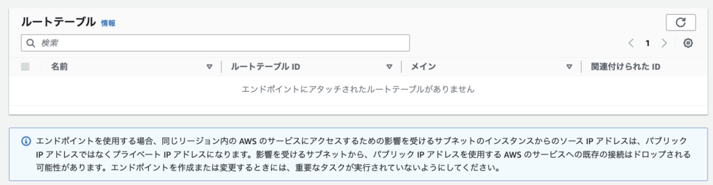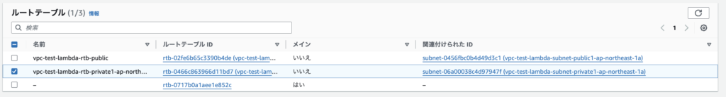 今回はPrivateSubnetのLambdaからS3にアクセスしたいので、PrivateSubnetのルートテーブルを選択します。