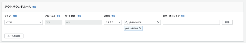 - 送信先;S3のIPアドレス群(pl-xxxxx)