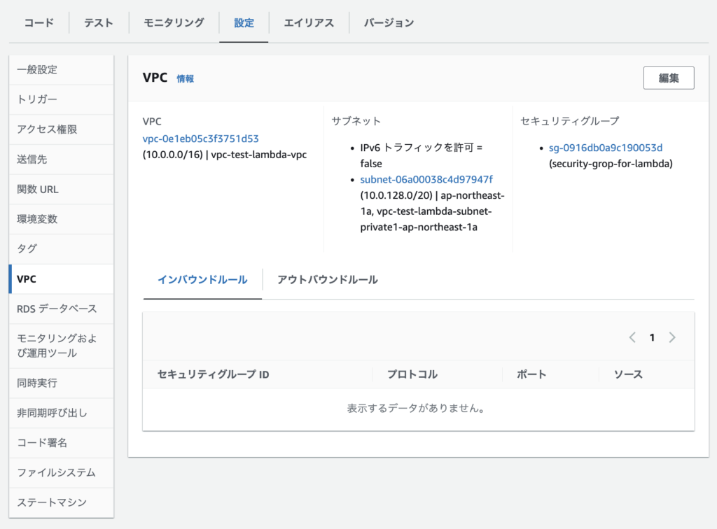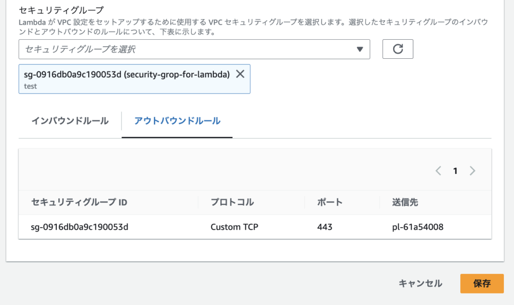 今回作成したセキュリティグループは、後述するLambdaに設定します。
