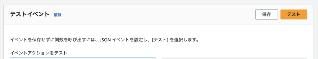 作成したLambdaを実行してみます。AWS マネジメントコンソール上でテストします。