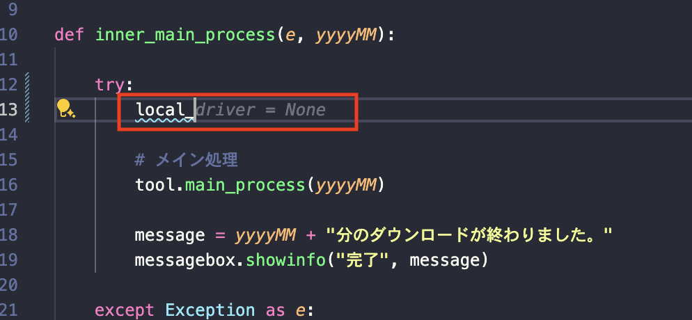 GitHub Copilotは、プログラミング中にコード補完機能として、作成しようとしているコードを予測して提案してくれます。これまでのコード補完機能は、メソッド名などを一覧から選択できるようなものでしたが、GitHub Copilotは下記のようにコードそのものの補完を提案してくれます。