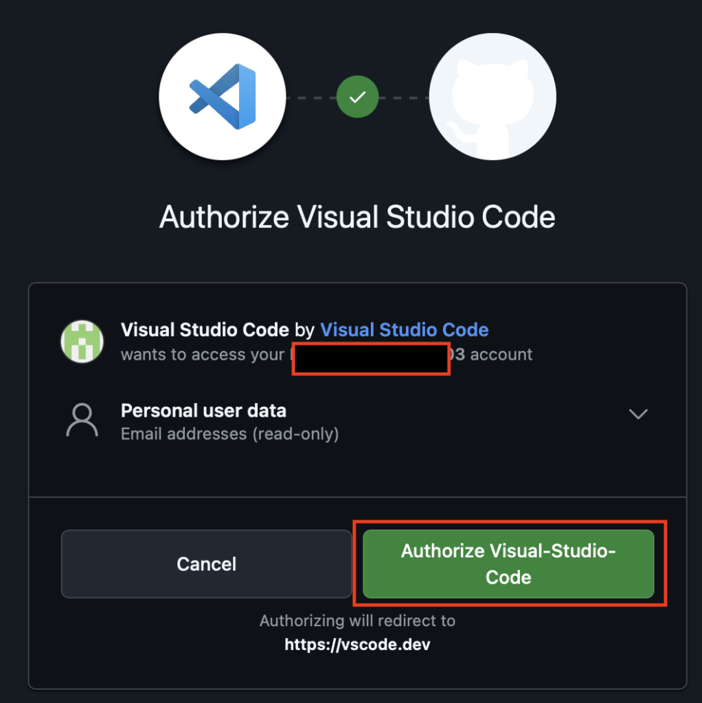 - Step4VSCodeに認証するか聞かれるので「Authorize」を選択