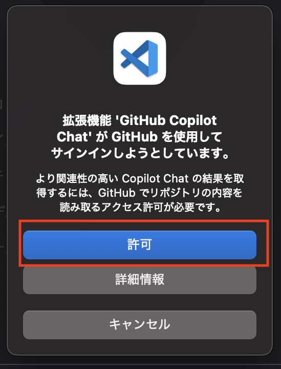 - Step6VSCodeで以下のポップアップが出るので「許可」を選択