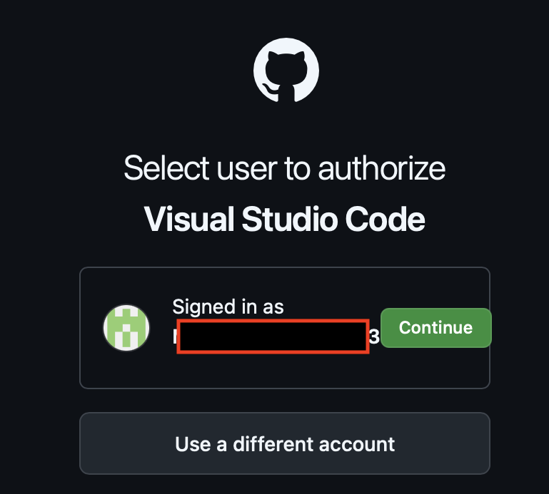 - Step3ブラウザが立ち上がるので、githubアカウントを選択(Continue)