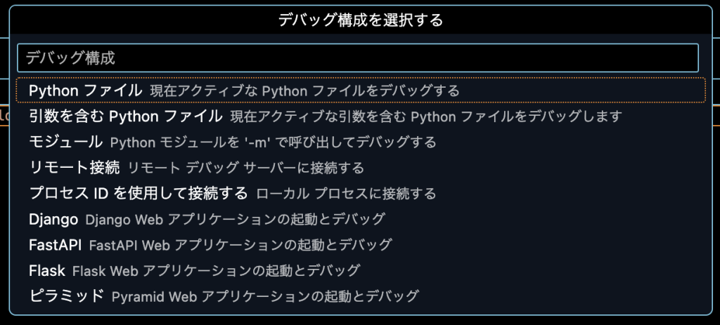 - Step3デバッグ構成で「Pythonファイル」をクリック